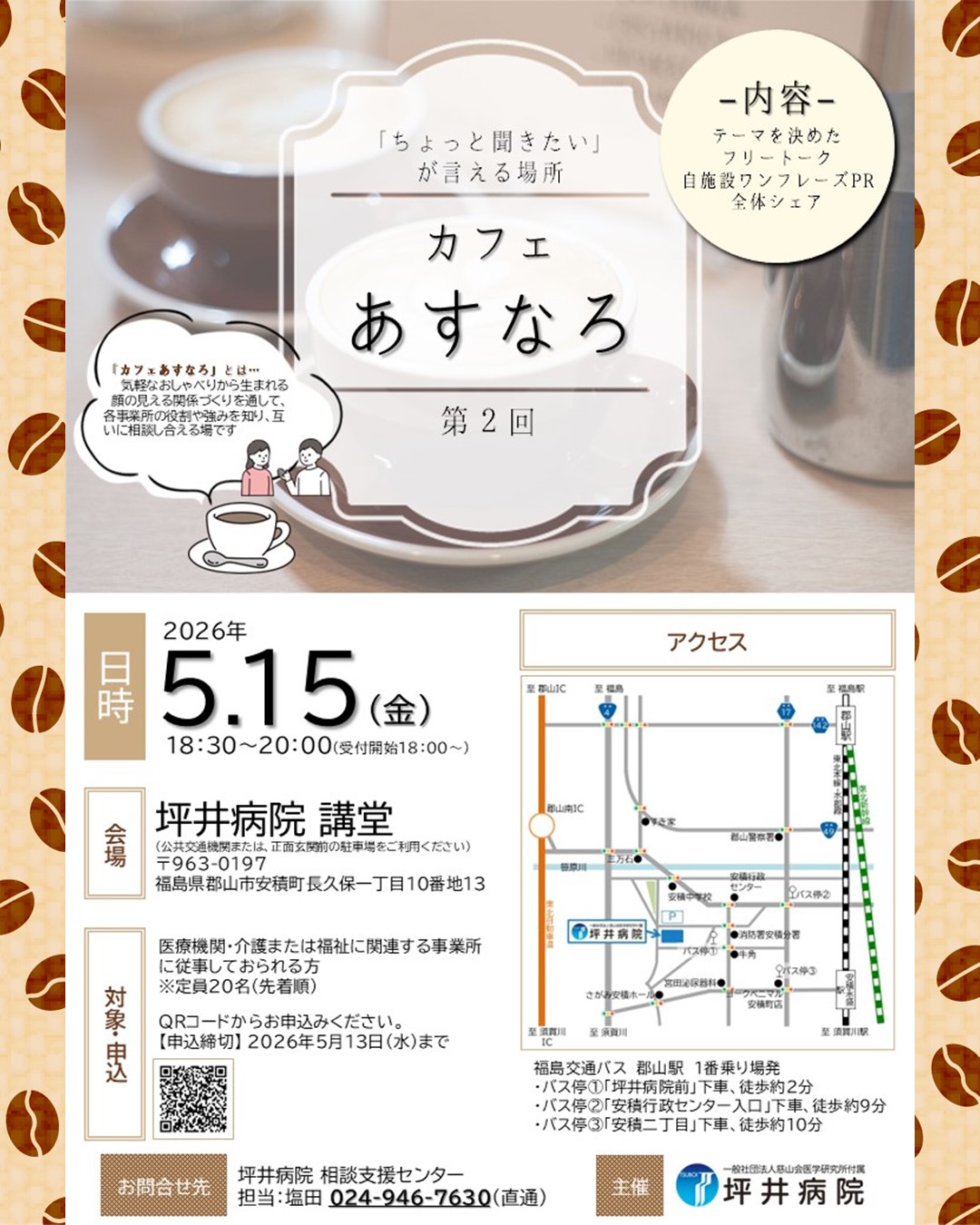 【お問合せ先】坪井病院 相談支援センター 塩田 024-946-7630(直通)